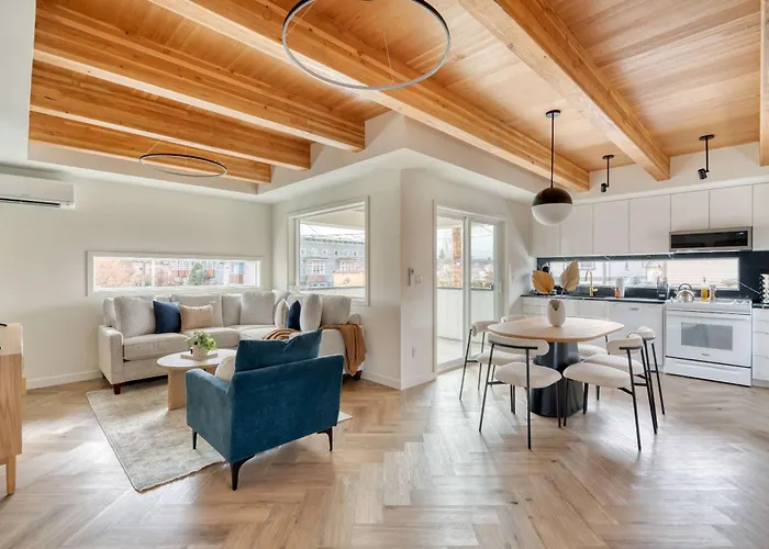 The 2-bedroom holiday home is situated just steps from the The People's Yoga|the People's Yoga, while Northeast Alberta & 24th bus station is 150 metres away. The nearby points of interest also include the Townshend's Alberta Street Teahouse, which is a 5-minute walk away.
